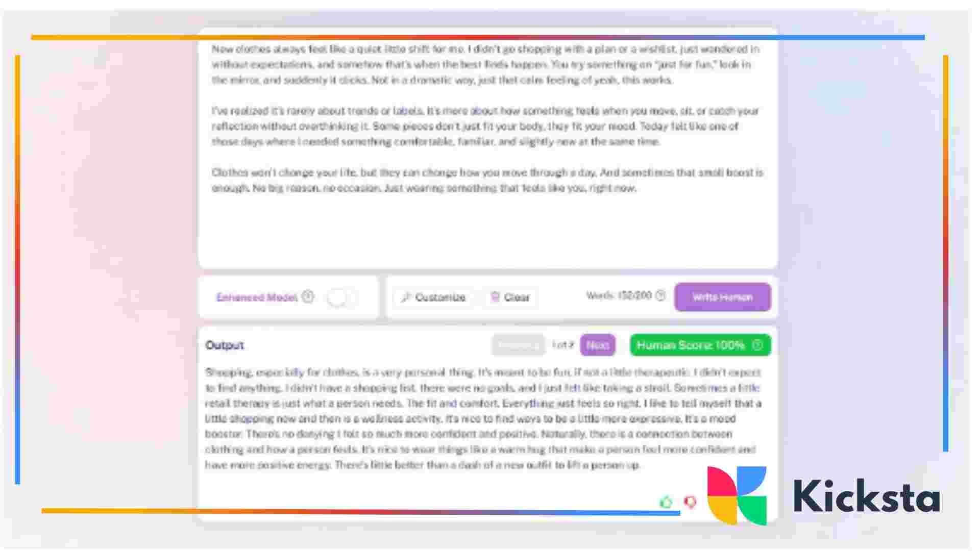 Write Human AI is a paid-first tool that rewrites AI text to sound more natural. In testing, it produced mid-range AI detection results, with average detection around 14–15% AI, which is lower than raw AI output but higher than top-performing humanizers. Grammar quality scored slightly higher than Clever in some samples, averaging around 93/100. The text was clean and readable, but often leaned toward a safe, generic tone, which can feel neutral on social platforms.